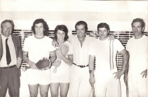 foto de arriba, el de la plaqueta " chiquito" Lopez, al lado Obdulio San Martin, extraordinario jugador de Chacabuco hizo historia jugando en pareja con el "Pelado" Rodriguez, el pibe que está parado es Obdulio San Martin(h) pelotari hasta los huesos, hoy Ingeniero, uno de los capos de "Don Mario Semillas", excelente profesional y mejor persona.