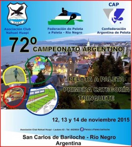 A partir del Jueves 12 de Noviembre y hasta el Sábado 14, se jugará en la Ciudad de San Carlos de Bariloche, el Torneo Argentino de Trinquete de Mayores.